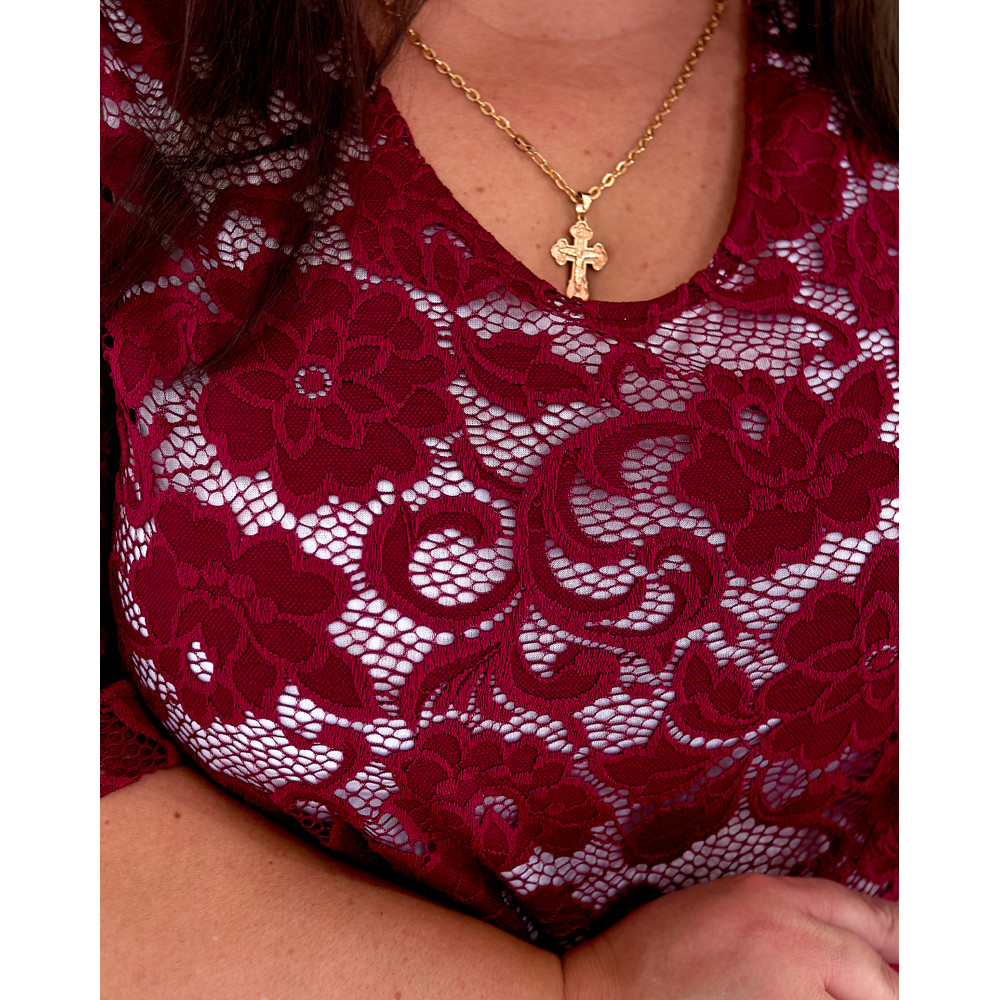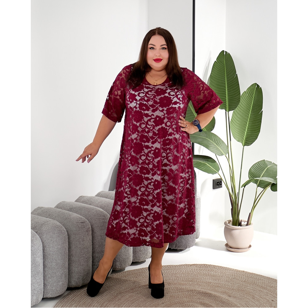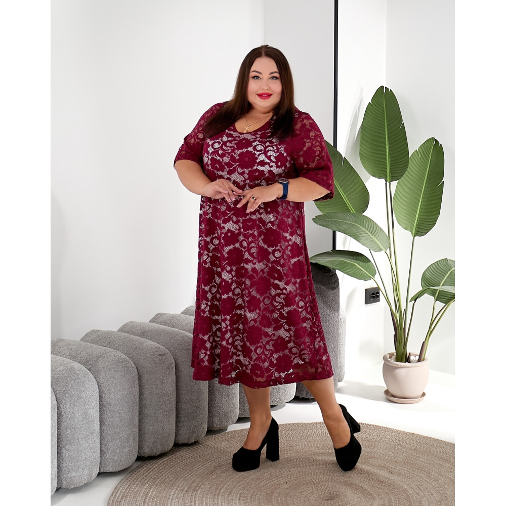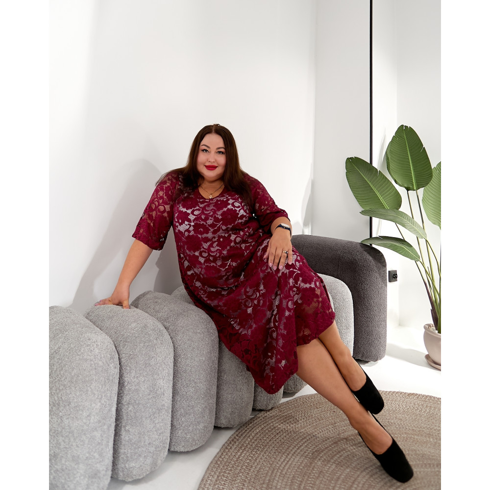 Бордове плаття-гіпюр 3646-3 великий розмірів