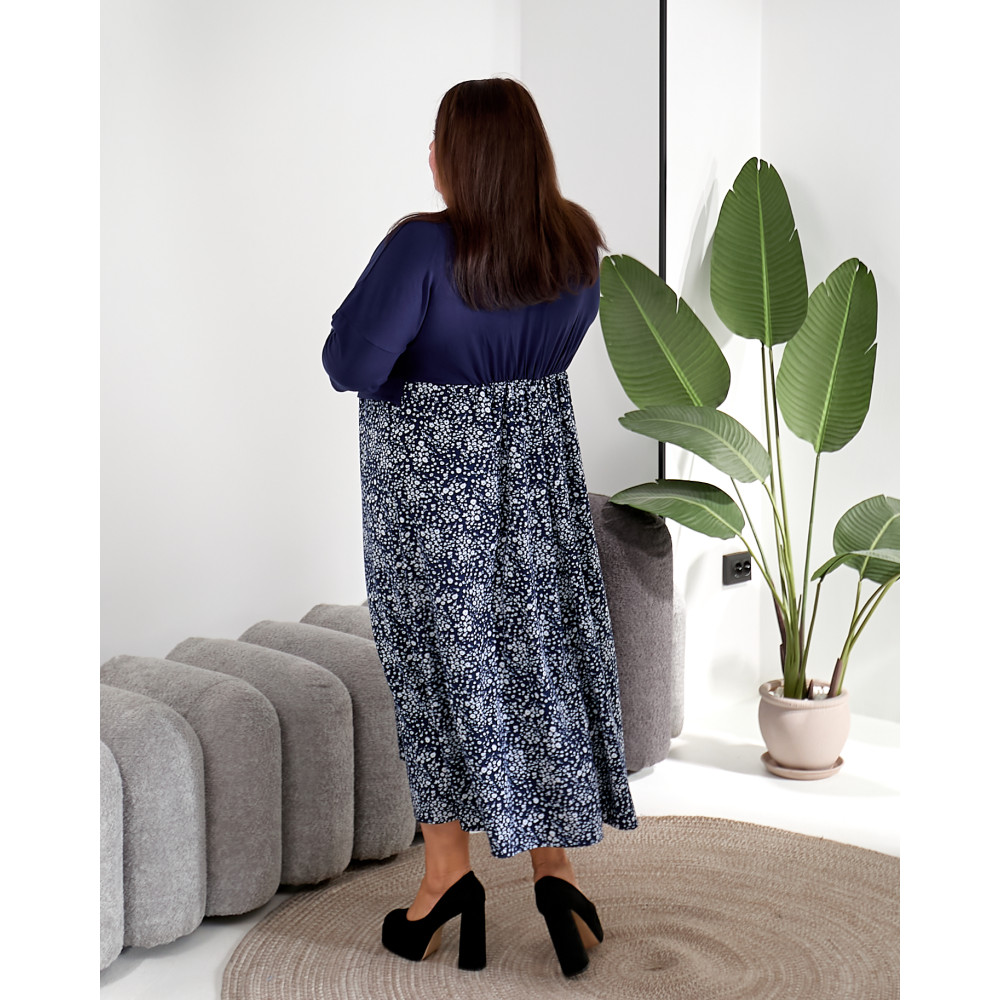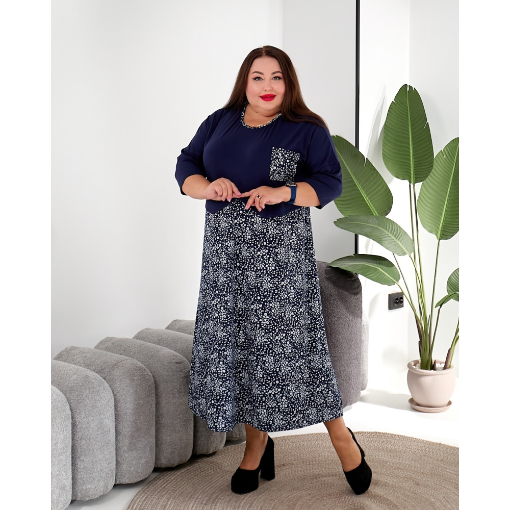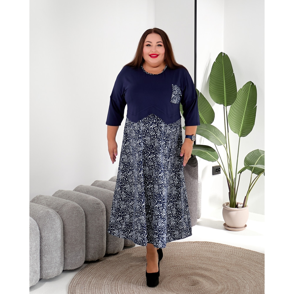 Фактичні розміри виробу: 62-64 ОГ 130, ОБ 165, Довжина виробу 126, ДР 54, ШР 48/32 66-68 ОГ 140, ОБ 175, Довжина виробу 127, ДР 56, ШР49/33 70-72 ОГ 150, ОБ 185, Довжина виробу 128, ДР 58, ШР 50/34 74-76 ОГ 160, ОБ 195, Довжина виробу 130, ДР 60, ШР 51/35 78-80 ОГ 170, ОБ 210, Довжина виробу 130, ДР 63, ШР52/36 Привнесіть свіжість і стиль до свого гардероба з нашою комбінованою сукнею великих розмірів, ідеальним вибором для жінок з пишними формами. Верхня частина сукні виконана в глибокому синьому відтінку, надаючи образу елегантності та вишуканості, в той час як нижня частина прикрашена модним синім патерном на білому тлі, додаючи вбранню яскравого акценту і стильного штриха. Наші сукні вирізняються прекрасною якістю та увагою до деталей, забезпечуючи вам максимальний комфорт і впевненість у собі. Ми розуміємо, що кожна жінка унікальна, тому наші розміри розроблені з урахуванням розмаїття форм і фігур, забезпечуючи ідеальну посадку і комфорт протягом усього дня. Поєднання білого та синього кольорів створює стильний та елегантний образ, який підходить як для повсякденних справ, так і для особливих заходів.