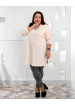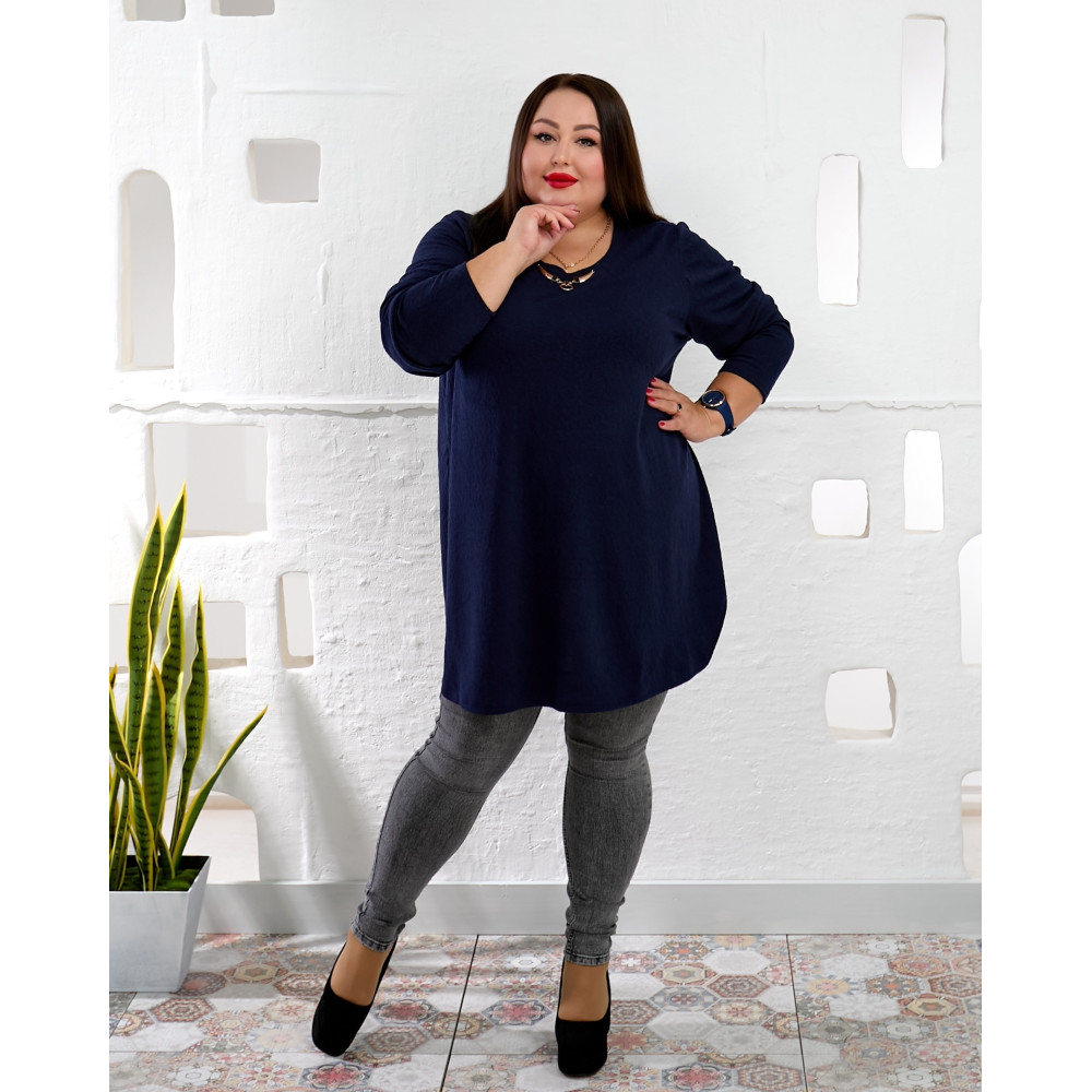Туніка виконана з трикотажного полотна жакард, яке відрізняється приємною текстурою та комфортом у носінні. Модель має вільний прямий крій, що вдало підходить для фігур plus size, не обмежує рухів і дарує відчуття легкості. Довжина нижче стегон візуально витягує силует, а невеликі розрізи з боків додають зручності.
