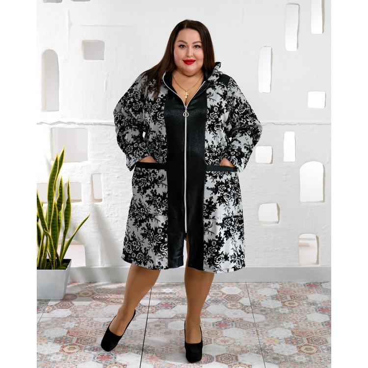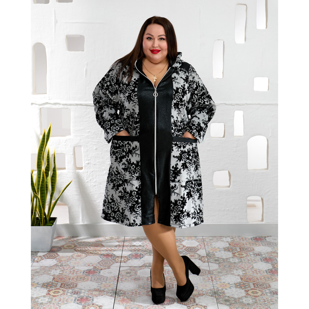 Чорний центральний елемент візуально витягує силует, а візерункове жакардове полотно створює виразний та сучасний образ.